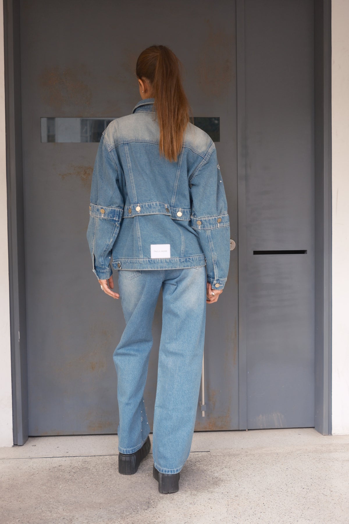 Detachable jacket, perfect for creating different looks, layering, and styling your pieces. Made in a blue wash tone with an ideal fit and color. Pair it with our Blossom Jeans or Blue Washed Jeans for a full coordinated outfit.