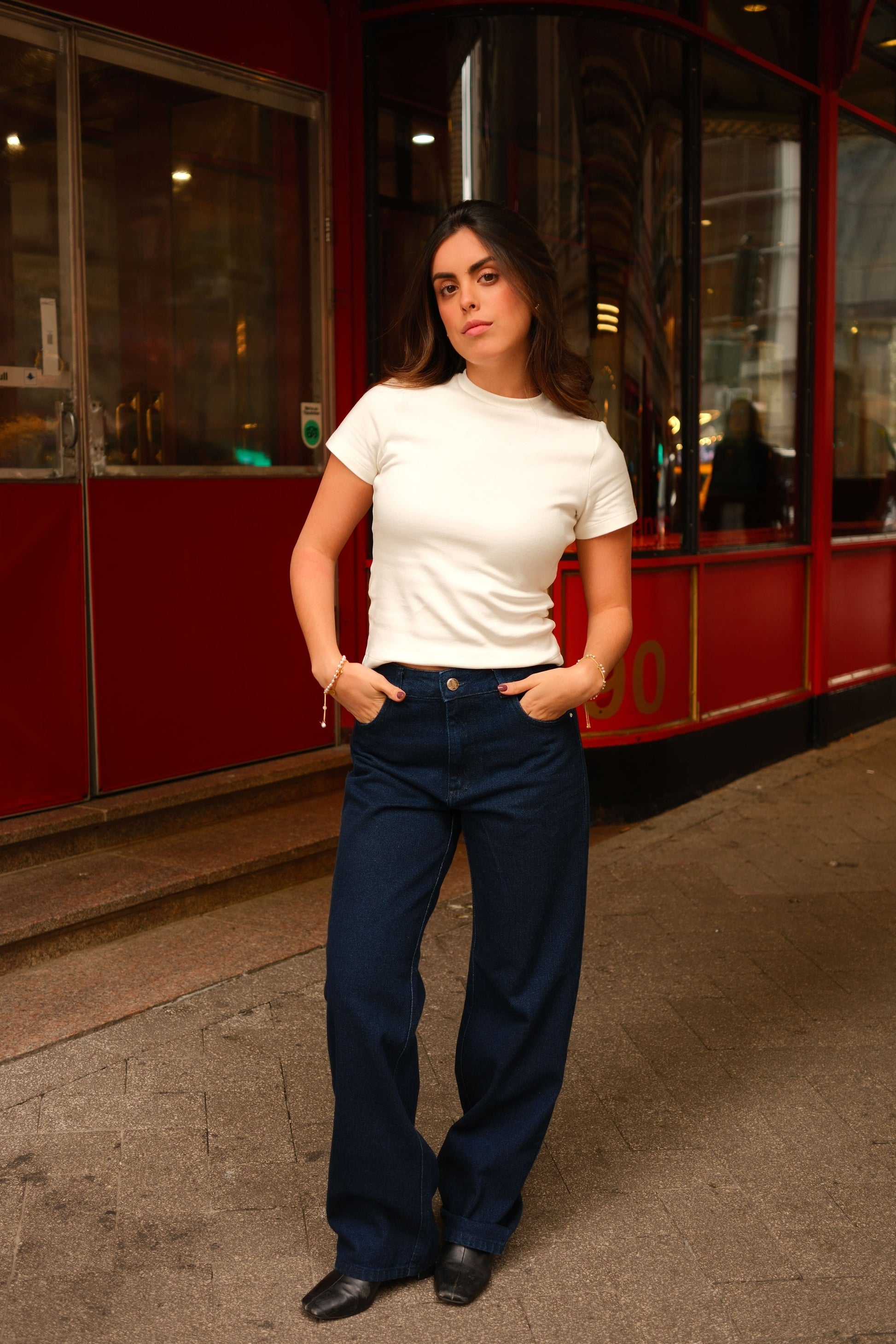 Jeans made of 100% cotton in an indigo tone, decorated with shiny diamond-like rivets on the front and two glittery blue stars on each back pocket. Perfect for elevating all your looks.