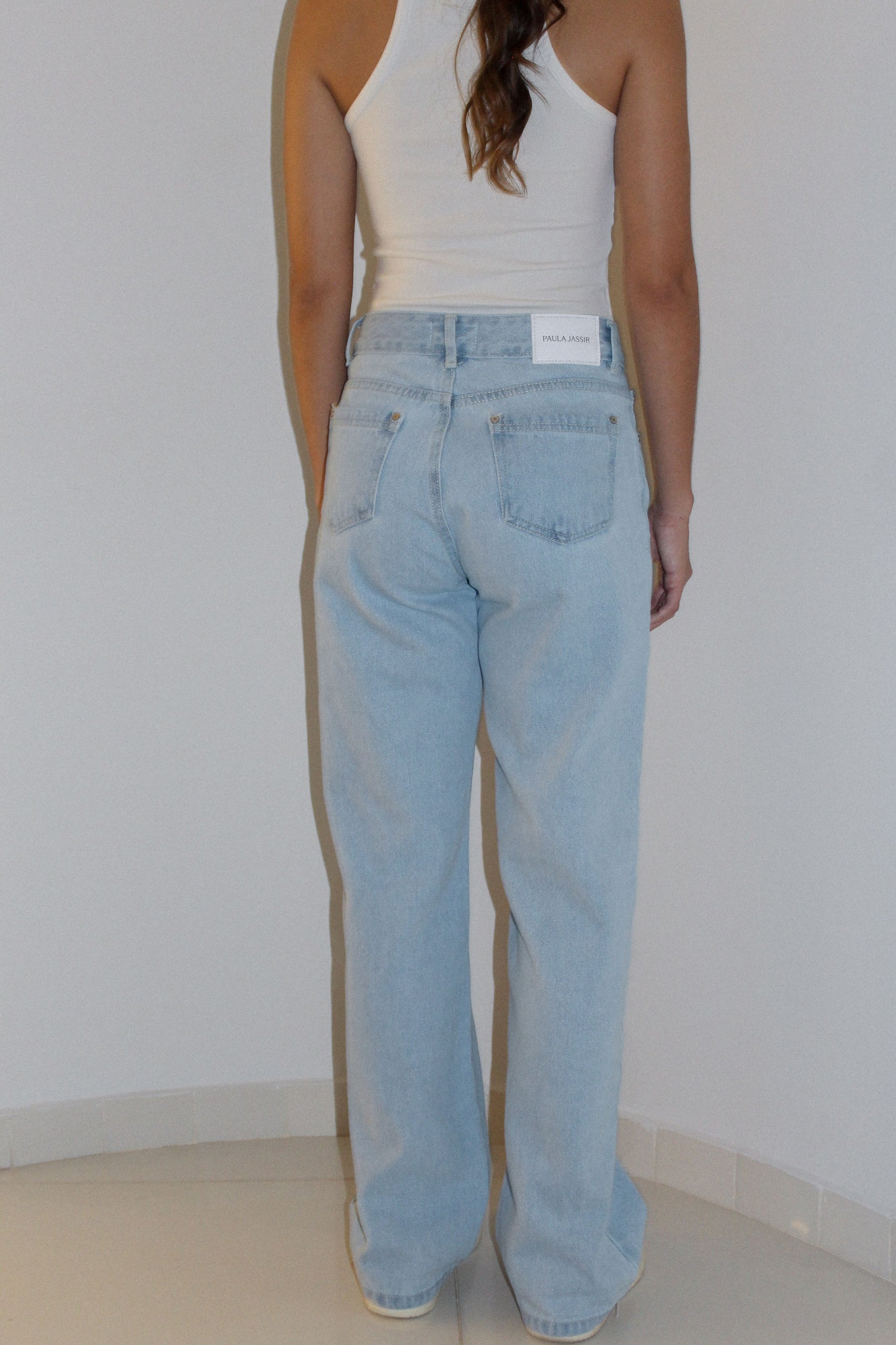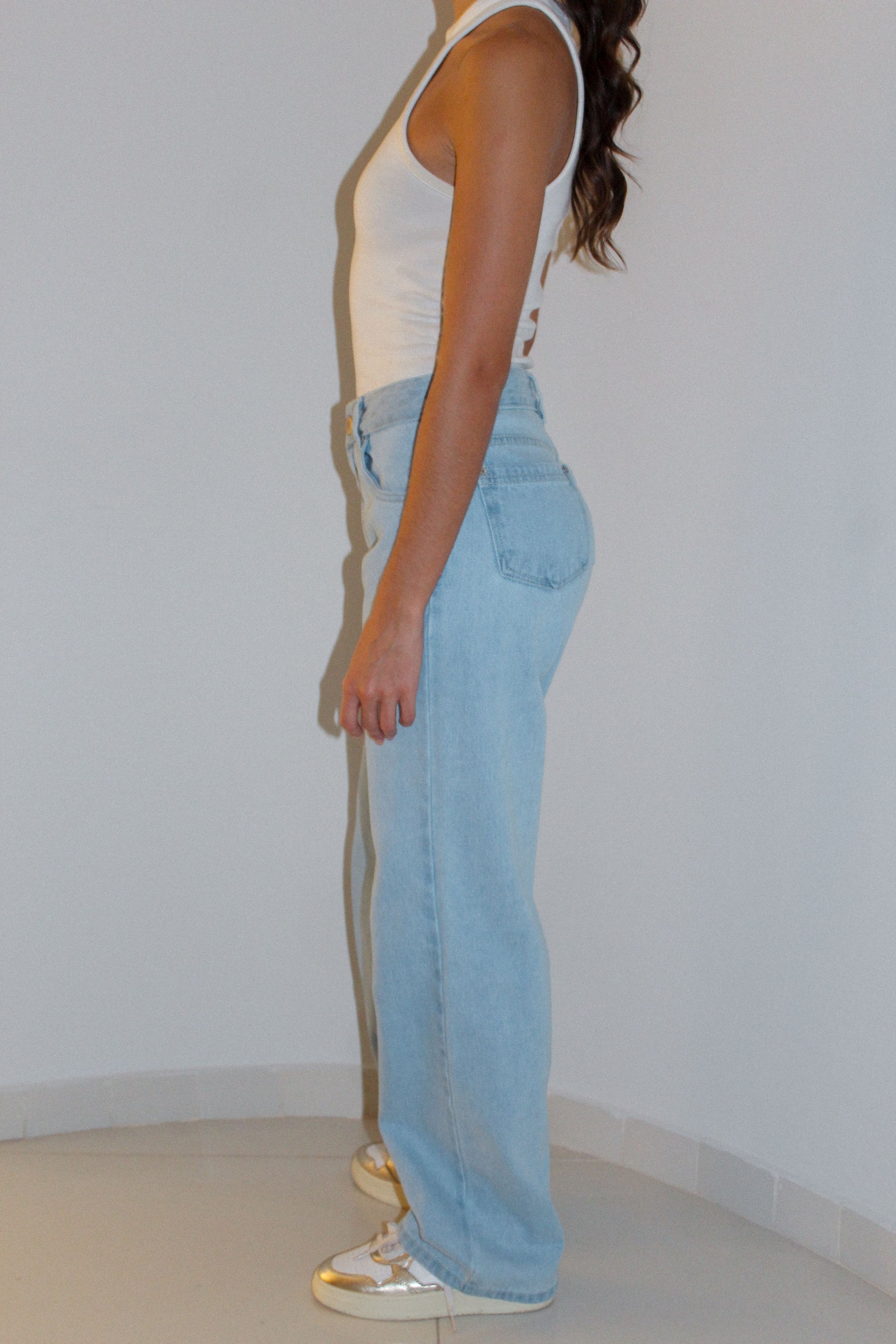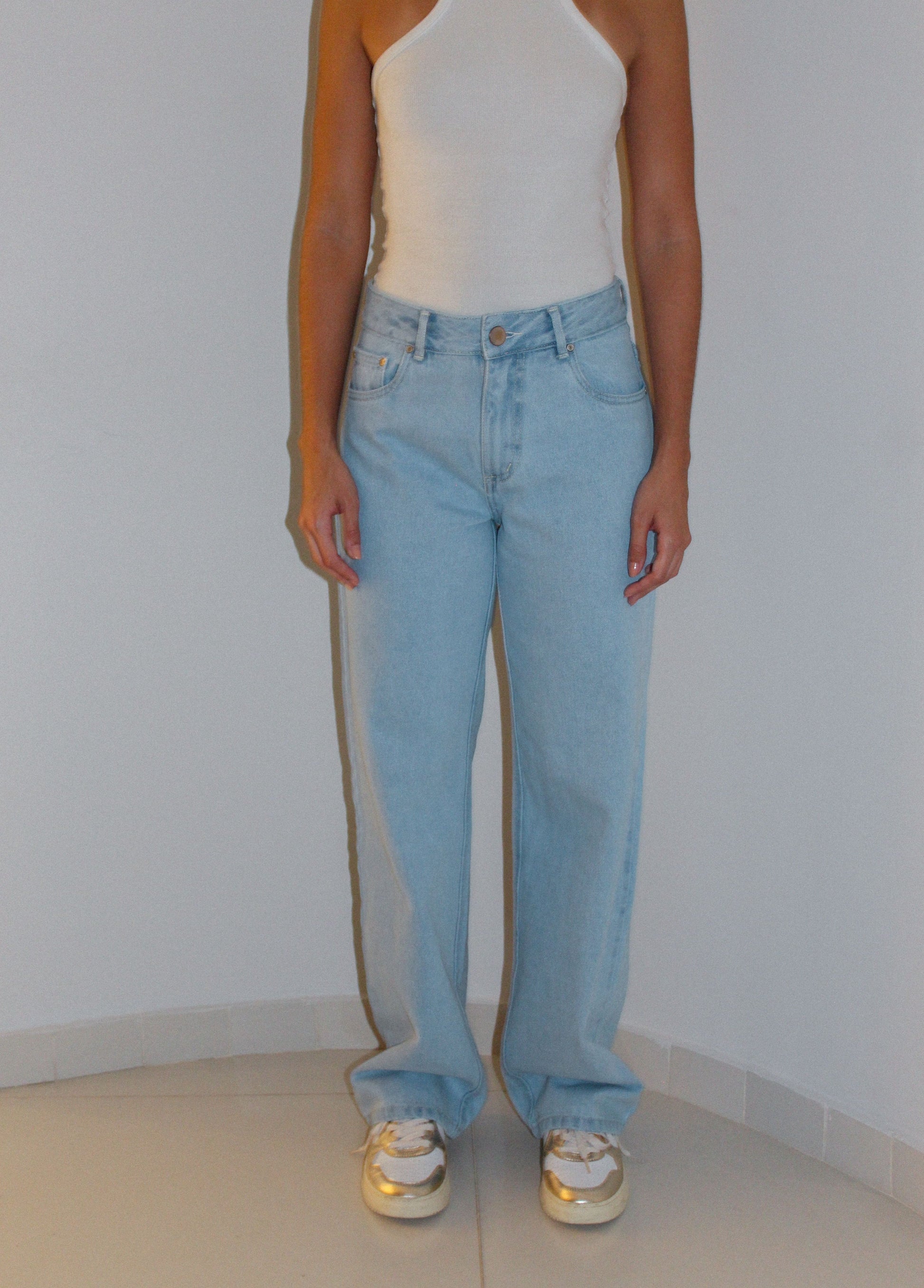 Jean 100% coton bleu clair, un jean rigide qui s'adapte parfaitement à la silhouette de votre corps, en jean 100% coton.