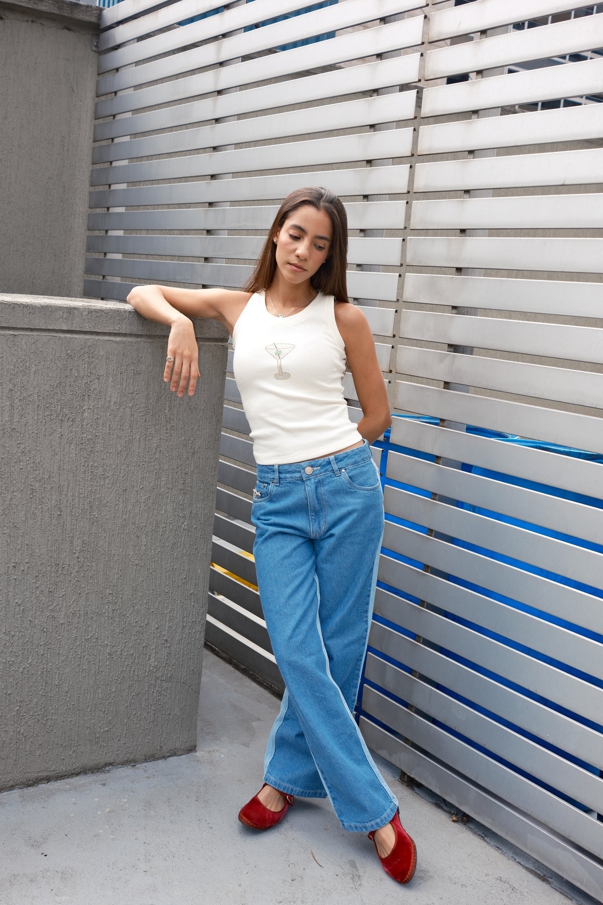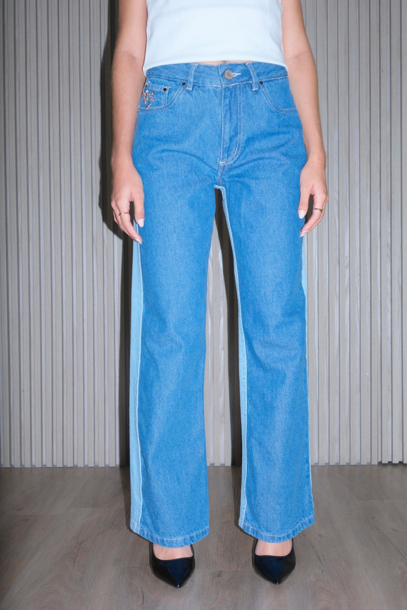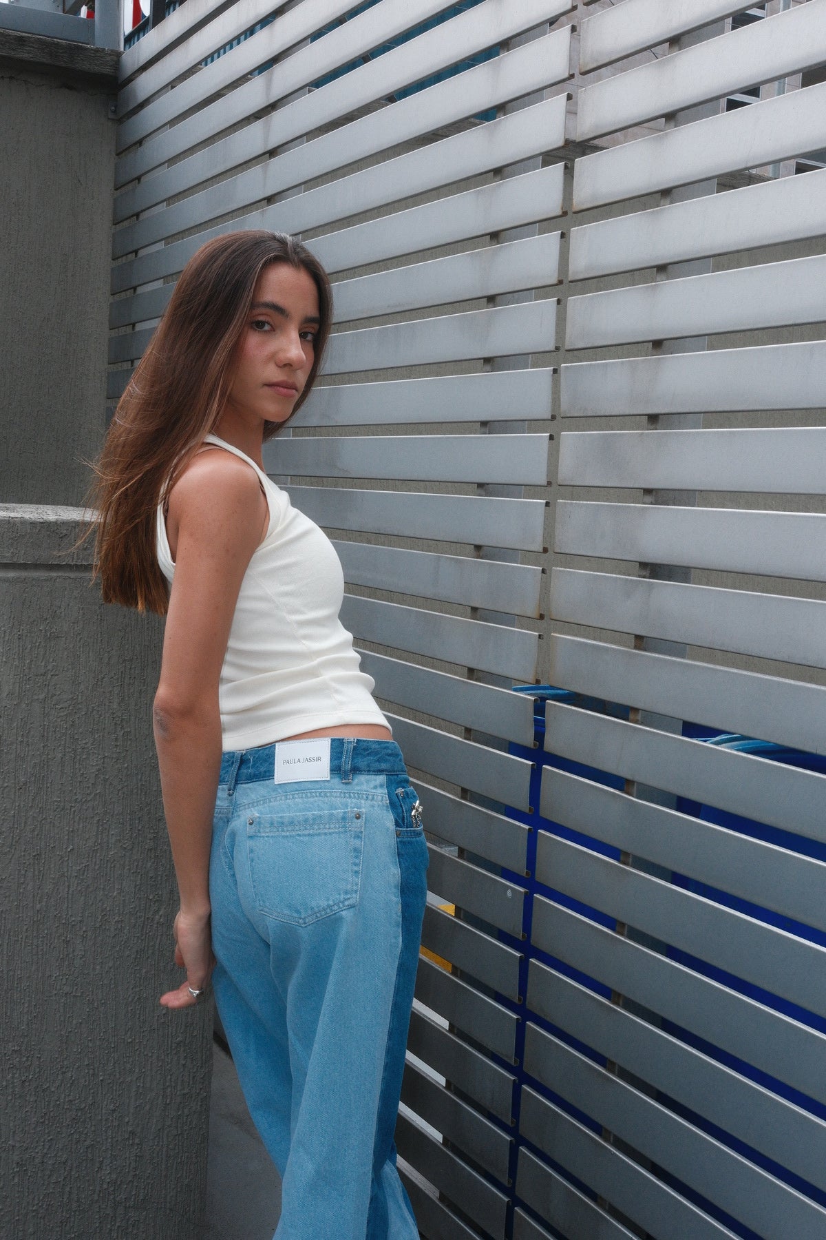 Their rigid denim gently shapes the waist without tightening the legs, striking the perfect balance between structure and comfort. A versatile design for everyday wear, with a relaxed fit and a unique visual finish—ideal for fresh, modern looks.